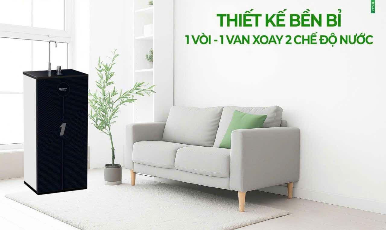 Kangaroo Messi KG10V7-N1 sử dụng 1 vòi duy nhất được thiết kế đẹp mắt, bền bỉ. 1 van xoay lấy nước cho 2 chế độ nước RO – nước khoáng.