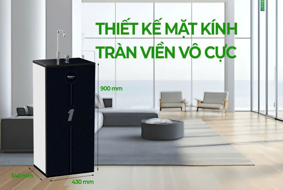 Dòng sản phẩm máy lọc nước RO Kangaroo Messi KG10V7-N1 hoàn toàn mới có thiết kế mặt kính cường lực tràn viền ấn tượng, siêu bền, dễ vệ sinh sẽ góp phần mang đến không gian sang trọng dù đặt máy tại bất cứ nơi đâu.